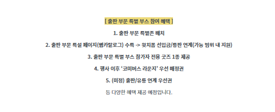 '출판 부문 특설페이지'는 코미버스 운영위원회에서 자체적으로 제작 및 운영할 예정입니다.